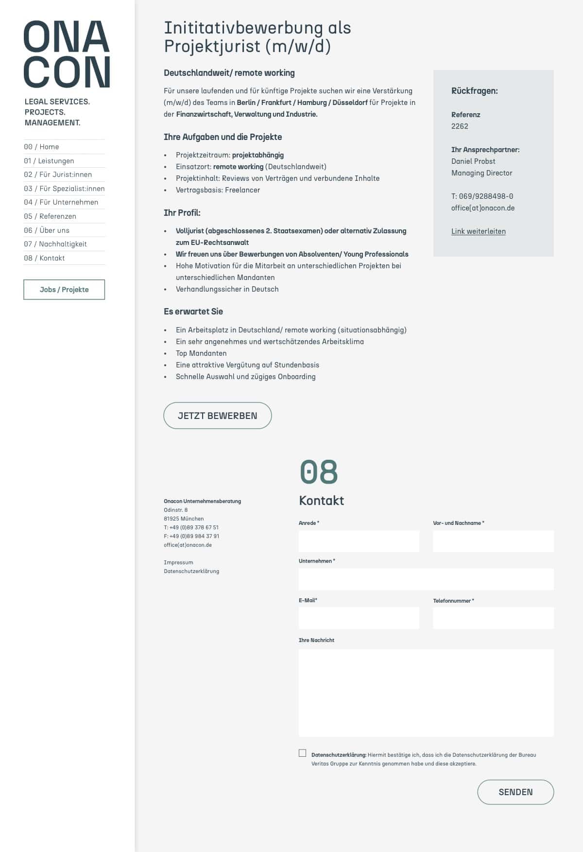 Onacon online Platform bietet eine effiziente Möglichkeit, hochqualifizierte Projektjuristen mit umfangreicher Erfahrung in verschiedenen Branchen und Großprojekten zu finden. Sie dient als Schnittstelle, um juristische Expertise und Ressourcen gezielt zusammenzubringen, um den Erfolg von Großprojekten sicherzustellen.